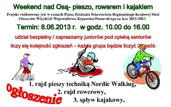 Rajd rowerowy odbędzie się 8.06.2013 , start godz. 10.00 w miejscowości Nicwałd.